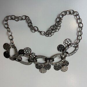 Hammered Silver-Tone Chain Link Necklace Textured Discs 24”