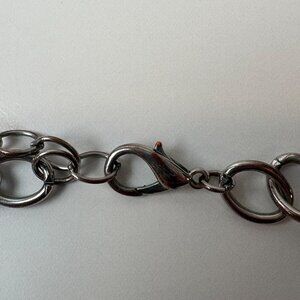 In the dim light of an antique shop, this hammered silver-tone necklace catches the eye, its textured discs dancing with every slight motion. The sturdy chain links whisper tales of craftsmanship, while the lobster clasp ensures security. A treasure that tells stories of elegance and timeless style.