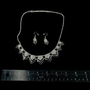 Hammered Silver-Tone Geometric Black Striped Necklace & Earring Set