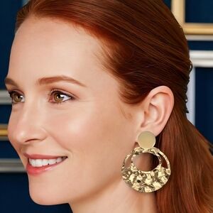 18K gold plated statement earrings | Hammered texture bold earrings | Large gold circle earrings | Stainless steel hypoallergenic jewelry | Gold plated modern statement jewelry | Boho chic statement earrings | Bold hammered gold earrings | Fashion jewelry statement accessories | Elegant party earrings | Lightweight gold dangle earrings | Modern chic gold plated hoops | Trendy fashion statement jewelry | Textured gold earrings | Stainless steel tarnish resistant earring