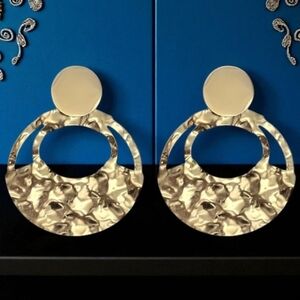18K gold plated statement earrings | Hammered texture bold earrings | Large gold circle earrings | Stainless steel hypoallergenic jewelry | Gold plated modern statement jewelry | Boho chic statement earrings | Bold hammered gold earrings | Fashion jewelry statement accessories | Elegant party earrings | Lightweight gold dangle earrings | Modern chic gold plated hoops | Trendy fashion statement jewelry | Textured gold earrings | Stainless steel tarnish resistant earring
