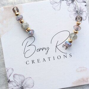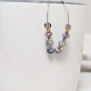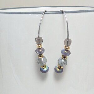 Hammered Steel Labradorite and Smoky Quartz with Gold and Purple Hook Earrings