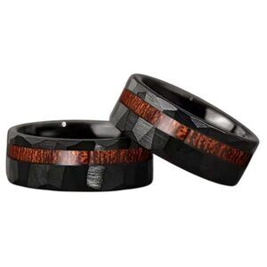 Hammered Tungsten Carbide Koa Wood Inlay Channel Wedding engagement ring