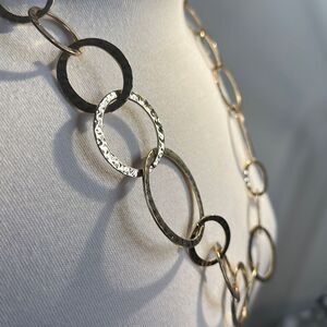 Hammered gold ring loop necklace