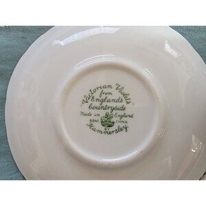 This elegant bone china teacup and saucer set, crafted by Hammersley in England, features the Victorian Violets design, evoking a timeless countryside charm.