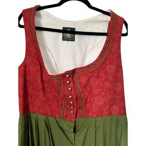 Hammerschmid Womens Trachten Dress Size 42 Linen Cotton Red Green Floral Maxi