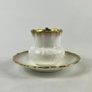Size: Cup ~2.5" H x 3" W, Saucer ~4.5" diameter