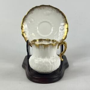 victorian ornate gilded embossed swirl rococo white antique english vintage footed cottagecore teacup gift regal tea parlor royal heirloom