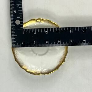 Condition: No cracks or chips. Slight shelf wear on base and light gold patina variation visible — shown in photos.