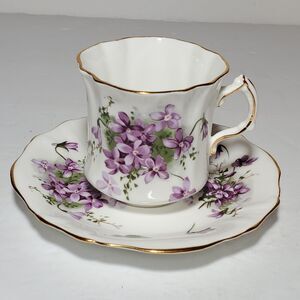 Vintage Hammersley teacup and saucer in pattern Victorian Violets. Purple violets. Bone china made in England. See all pictures.