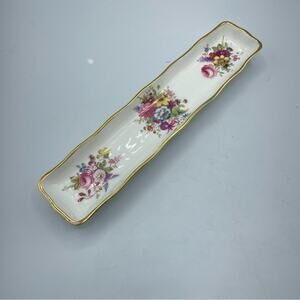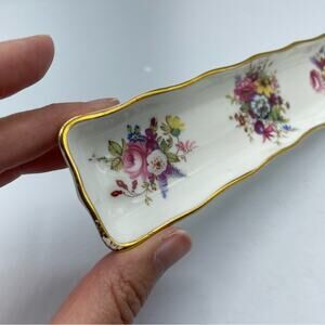 Hammersly & Co Bone China White Floral Print Gold Trim Rectangular Dish Small