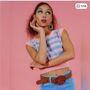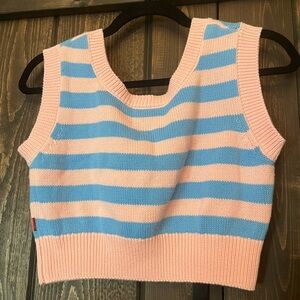 Hammies Womens Pink Blue Stripe Cropped Sweater or Vest Size S EUC Out of Print