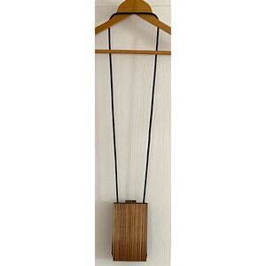 This Alcea Minaudiere wood handbag is a unique and stylish accessory, perfect for adding a touch of artistic flair to any outfit!