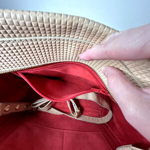 Hammitt Cream Leather Satchel Front Zip Pocket Red Interior Purse Leather Handle