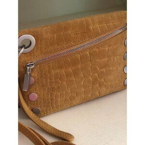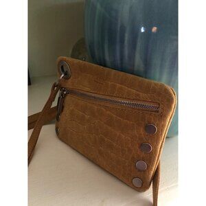 Hammitt Nash Small Gold Suede Crossbody Shoulder Handbag / Wristlet Or Clutch