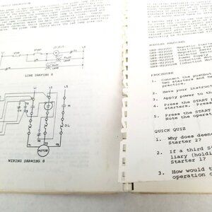 This Hampden Engineering student manual is a time capsule from technical education programs of the early 1980s. Originally used to teach motor control circuits and magnetic starter systems, it features detailed diagrams, step-by-step procedures, and quiz sections that show real student engagement from decades past. The handwritten notes and annotations add authentic character, making this a genuine piece of educational history. Ideal for collectors of vintage technical literature, vocational training materials, or anyone seeking reference documentation for Hampden lab equipment.