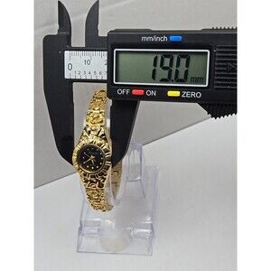Hampden Women Quartz Goldtone Nugget Bracelet Watch Japan Movt New Battery Black