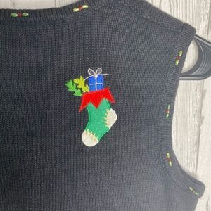 Hampshire Studio Black Christmas Beaded Appliqué Embroidered Sweater Vest PS Vtg