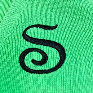 Hampshire Studio Green V-Neck Sweater XL 100% Cotton Monogram Embroidered "S"