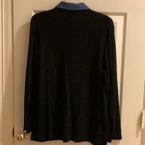 Hampshire Studio Halloween cardigan with denim collar, black with Halloween designs-see pictures for details, buttons down the front, size-medium, 60% cotton, 40% polyester. Excellent condition/never been worn. Smoke free home.