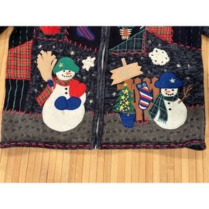 Hampshire Studio Ugly Christmas Sweater Sz Medium Snowman Patchwork Zip Up