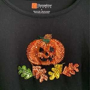 Hampshire Studio Women's Pumpkin Shirt Large Jack-O-Lantern Sequin Embellished