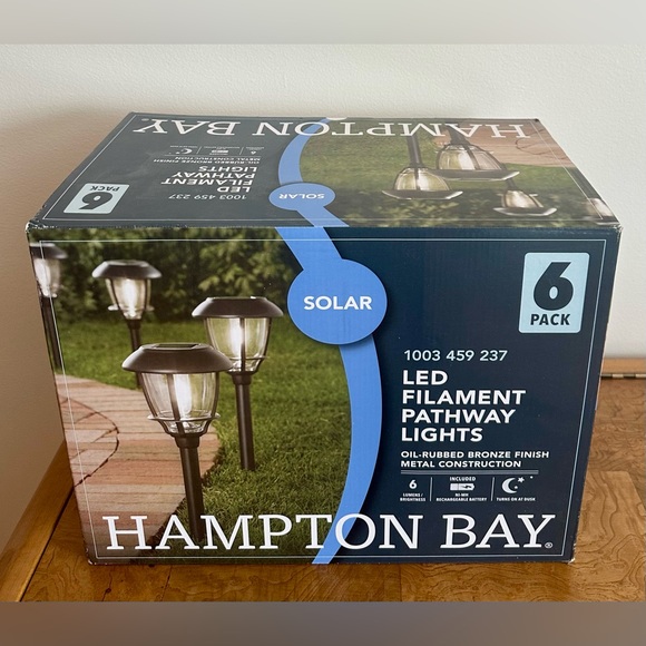 New and in box never used. 6-pack Hampton Bay bronze finished LED Pathway Lights. Perfect for enhancing your outdoor decor. Enjoy energy-efficient lighting with a stylish touch.