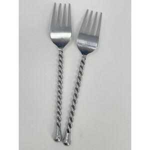 Hampton Carousel Salad Forks Twisted Stainless Flatware 7 3/8” Set Of 2