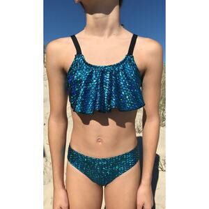 Hampton Mermaid Fish Scale Blue Ruffle Bikini Size 6