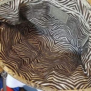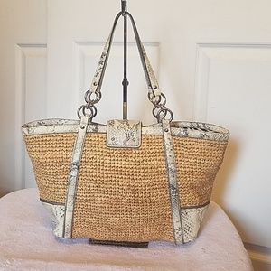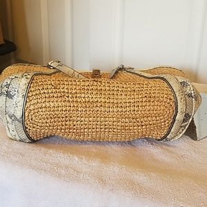 Gray and black python trim on straw. Gently used, like brand new. Absolutely no damage or flaws.