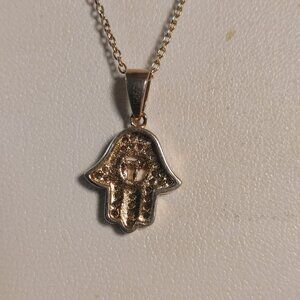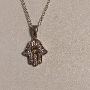 Hamsa Hand Pendant Necklace Gold Plated 925 Silver Rhinestone Accents 18 Chain
