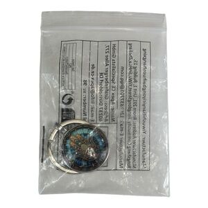 Elegant keychain featuring a blue and gold Hamsa design. Intricate details with a mystical eye centerpiece.