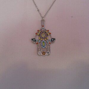 Hamsa Pendant Necklace Colorful and Napier Choker Silver Tone Metal