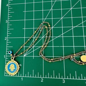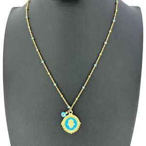 Hamsa Pendant with Evil Eye Dangle Bead Dainty Necklace Gold Plated Chain 17.5"