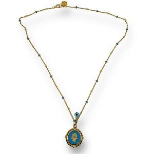 Dainty Hamsa Blue Enamel Pendant with Ball Chain