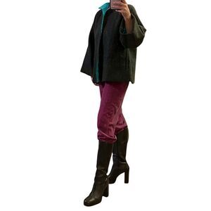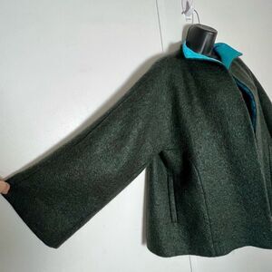 Han Feng Gray Wool Mohair Bell Sleeve Minimalist Lagenlook Jacket Teal Silk XL