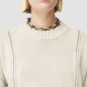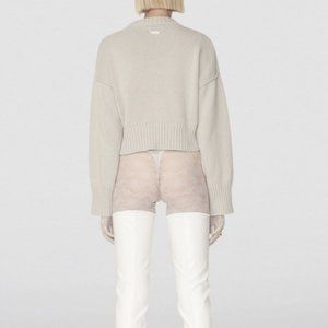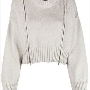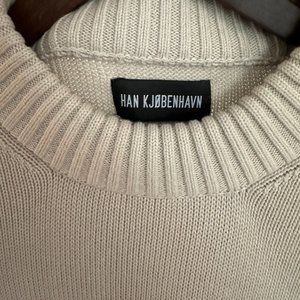 Has dual zippers that run down the front. Long sleeves and a cropped cut. Han Kjøbenhavn's metal logo is featured on the back for a distinct final signature.