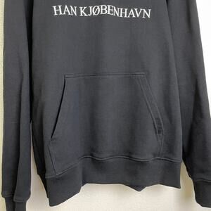 Han Kjoberhavn Black Hoodie Sweatshirt Medium Mens White Logo Pullover Heavy
