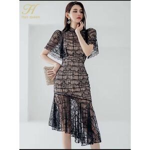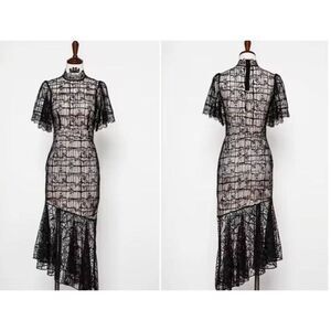 Black lace mermaid style zippered back fully line dress measurements in photos