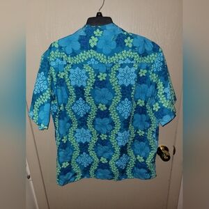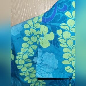Hana Fashion Single Stitch Vintage 90s Hawaiian Button Down Shirt Size XL! This Hawaiian shirt is such a vibe, and has amazing, vibrant, colorways. The top is teal with various shades of blue and green in the floral and Lei designs. The top is new without tags, but has been in storage for several years, still shows no signs of flaws. This shirt is a men's xl but could work for anyone and is true to size. Can be worn with the buttons undone or done up, all buttons are intact. Single stitch and such a 90s tourist vibe!