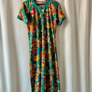 Hana silky teal floral print maxidress/house dress/swim coverup women's medium