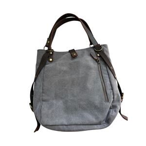 Tan Heavy duty canvas 3 in 1 shoulder bag, handbag and backpack with leather straps & accessories,