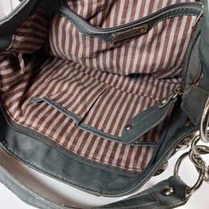 Hananel Gunmetal Gray Silver Studded Shoulder Bag Purse
