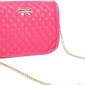 Well Made & Fashion Design Shoulder Purse: Custom fashion gold hardware, Designed with a cute bow d cor, A nice small wallet, Made of good quality "quilted Leather" fabric and polyester lining, Durable and Smooth Top Zipper Closure.