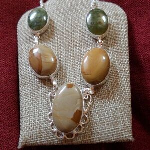 New Hancrafted JASPER PREHNITE NECKLACE 21"
