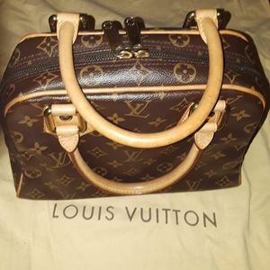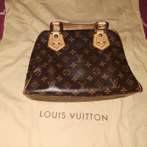 AUTHENTIC Very pretty Monogram Manhattan PM. Well kept from a smoke free pet free home. Dimension: Width 11.5 in x Ht 8 in x Depth 4.5 in. Handle drop 5.5 approximate. Authentication Code stamped inside pocket VI0805. Clean from inside to out. Handle with some discolored pinpoints not bothersome. Metal still shines though it has signs of usage. Piping and vachetta painted.