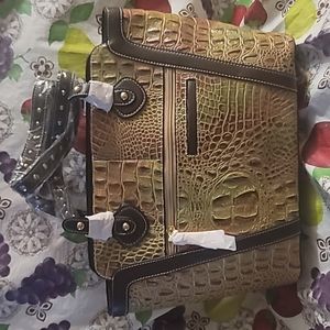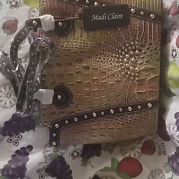 Brand new Madi Clarie croco Embossed leather studded zip top tote. Color lime muti. Great for outing.