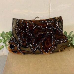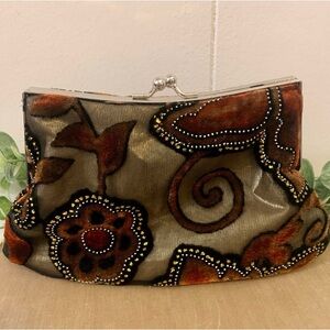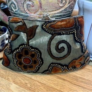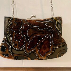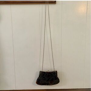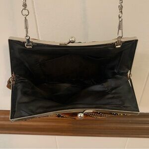 Hand Bag shoulder chain clutch snap closure ~ black silk lining