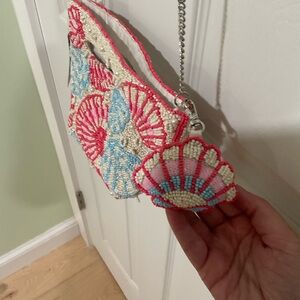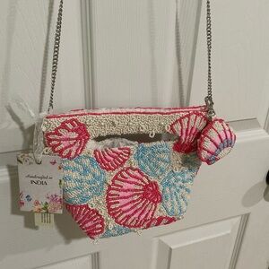 Hand Beaded Colorful Shell Pattern Women's Bag with Shell Keychain