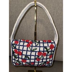 Hand Beaded Viral Cherry Checkered White Shoulder Evening Bag Coquette NWOT